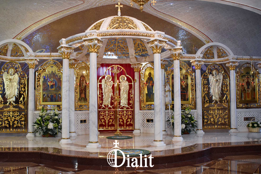 Над амвоном на восьми колоннах парит мраморный купол с изящным литьем, который осеняет верующих во время таинства причащения.