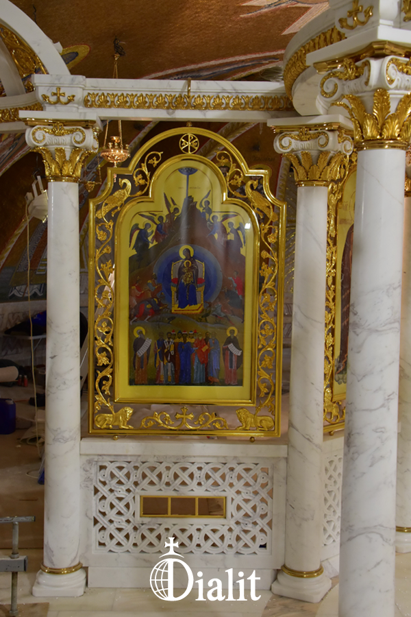 В нижнем храме этого собора, в честь Успения Пресвятой Богородицы предприятием Диалит специально разработано для этого храма и изготовлено пять мраморных иконостасов, пять мраморных престолов, пять мраморных жертвенников, мраморные киоты, два подсвечника с вытяжкой, напольные подсвечники, хоросы с паникадилами, бра и лампады.